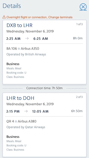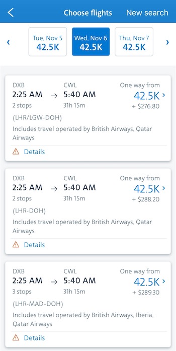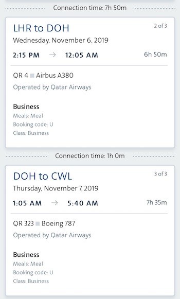 For example, want to fly from Dubai to Cardiff? How does redeeming 42,500 American miles sound for business class from Dubai to London on the British Airways A350, then London to Doha on the Qatar Airways A380, and then Doha to Cardiff on the Qatar Airways 787?