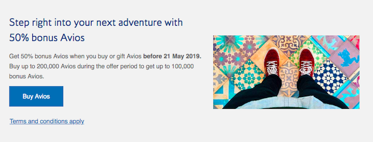 Through tomorrow (Tuesday, May 21, 2019) British Airways is offering a 50% bonus on purchased Avios.