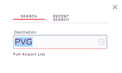 Note that not all cities will automatically show up when you enter the airport code or name. In those situations, click on the box with the code that isn’t coming up, and then select the “Full Airport List” option.