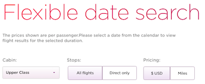 Personally I recommend just searching directly through Virgin Atlantic’s website. Their website interface works similarly to Delta’s, so it’s a pretty easy shopping experience.