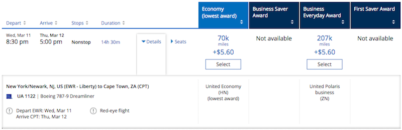 Now that United’s flight to Cape Town is bookable, the bad news is that award seats are priced quite high. One-way economy awards start at 70,000 miles, while business class award start at 207,000 miles. Hopefully the prices drop over time, though I wouldn’t count on it.