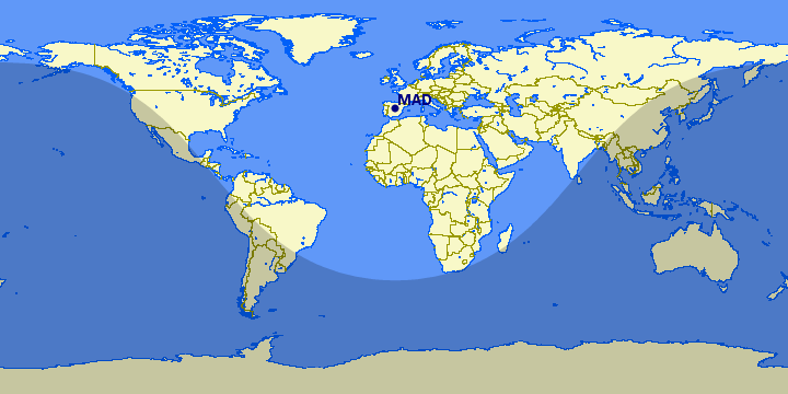 Just to give you a sense of the possibilities with this plane, here’s the A321XLR’s rough range from Madrid: