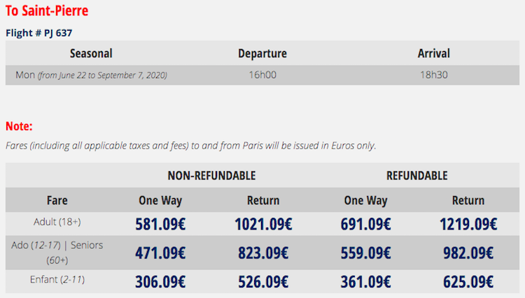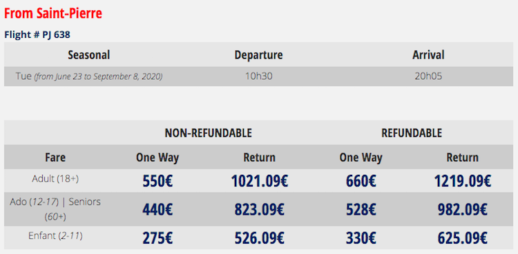 Then here’s the pricing from Saint-Pierre (as you can see, a one-way ticket costs 550EUR):