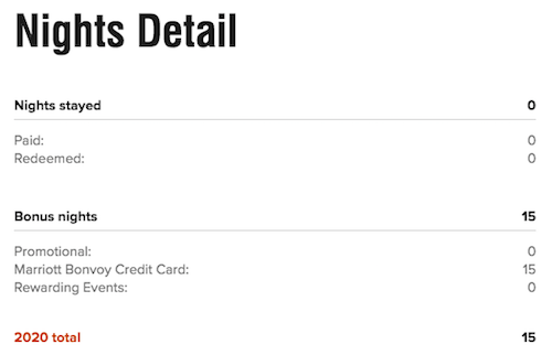 It’s worth noting that Marriott has posted the 15 elite nights much earlier than usual this year. If you have an eligible credit card, you should already see the 15 elite nights in your Marriott Bonvoy account.