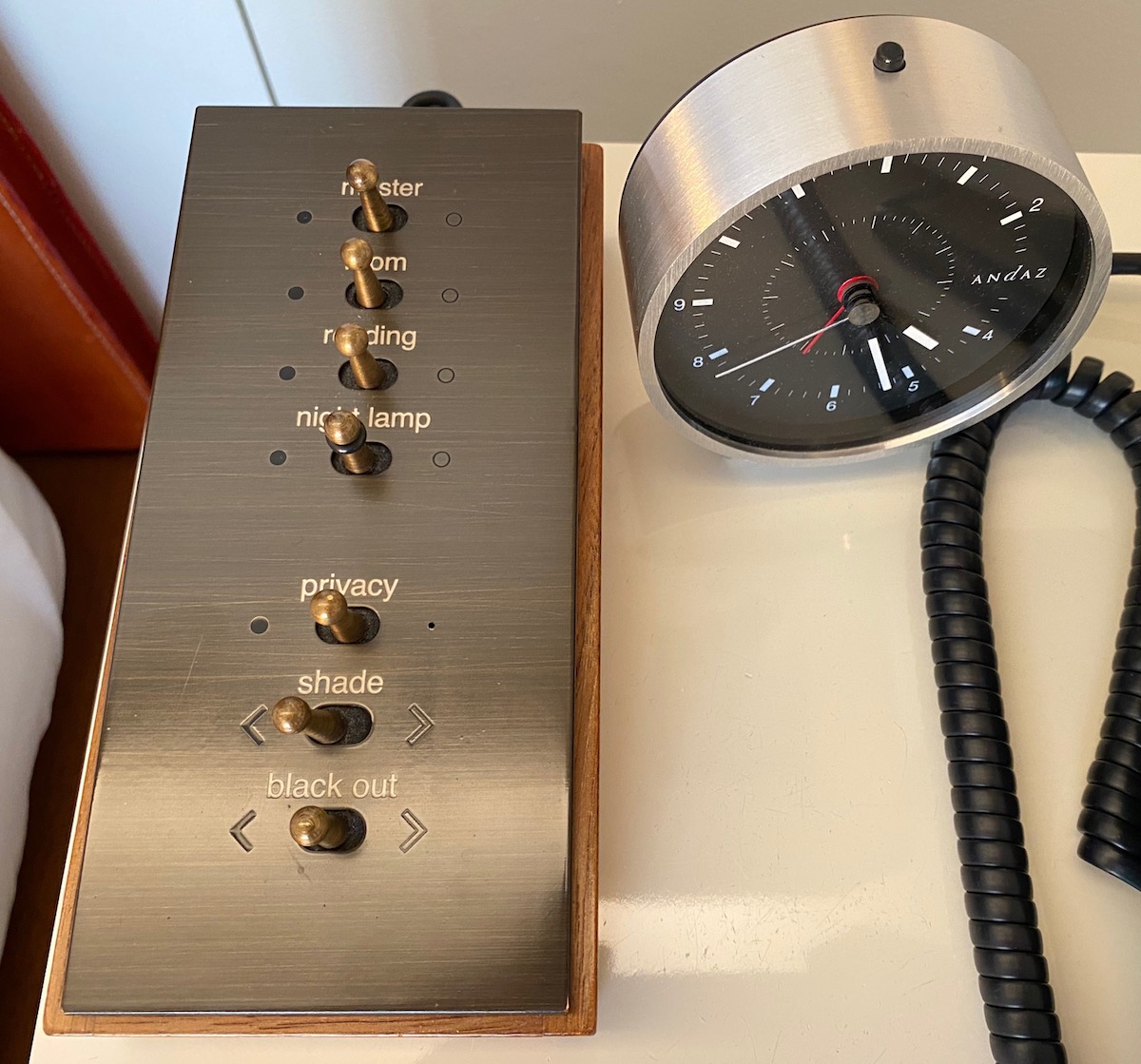 The room was pretty high tech, and virtually all the functions (including blackout shades) could be controlled from a retro-looking controller to the side of the bed.