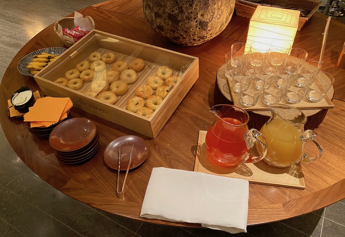 All Andaz properties offer a nightly happy hour, and the Andaz Tokyo offers that from 6PM until 8PM. This is available to all guests. Not only do they offer complimentary wine, but they also offer a rather substantial selection of canapés. Think something along the lines of a club lounge in the US, which is more than you’d usually find at an Andaz, but by no means a dinner substitute.