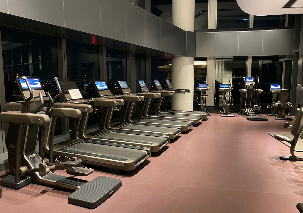The gym is right next to the pool, and is open 24/7. I thought the quantity and variety of equipment was excellent.