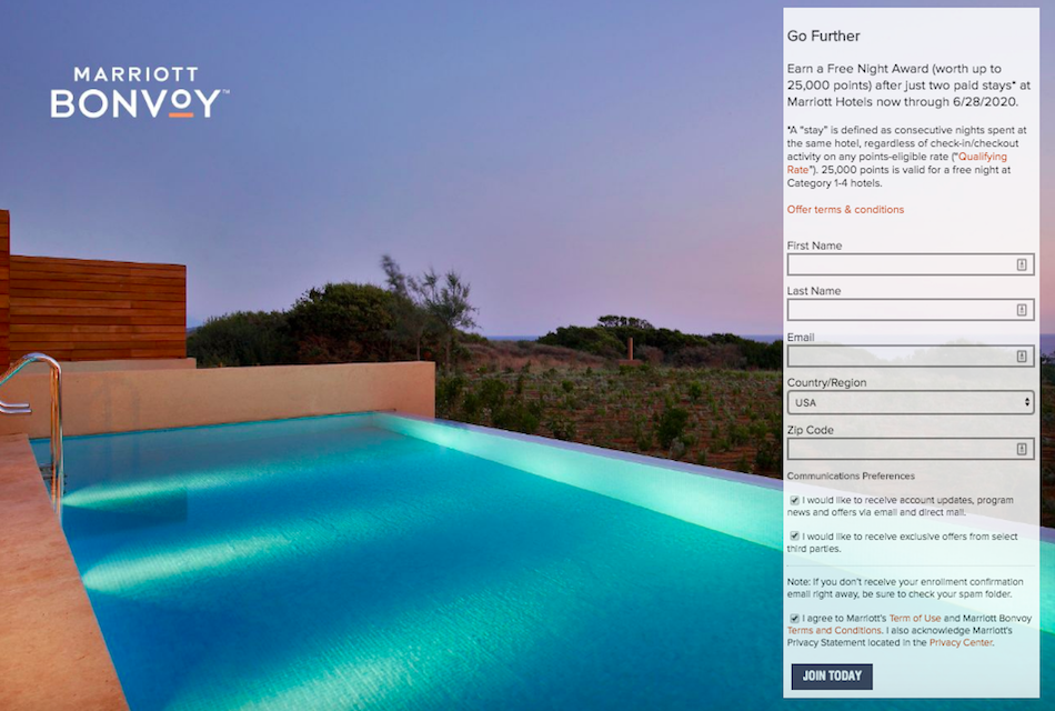 With the latest version of the promotion, new Marriott Bonvoy members can earn a free night certificate after making two paid stays between now and June 28, 2020.