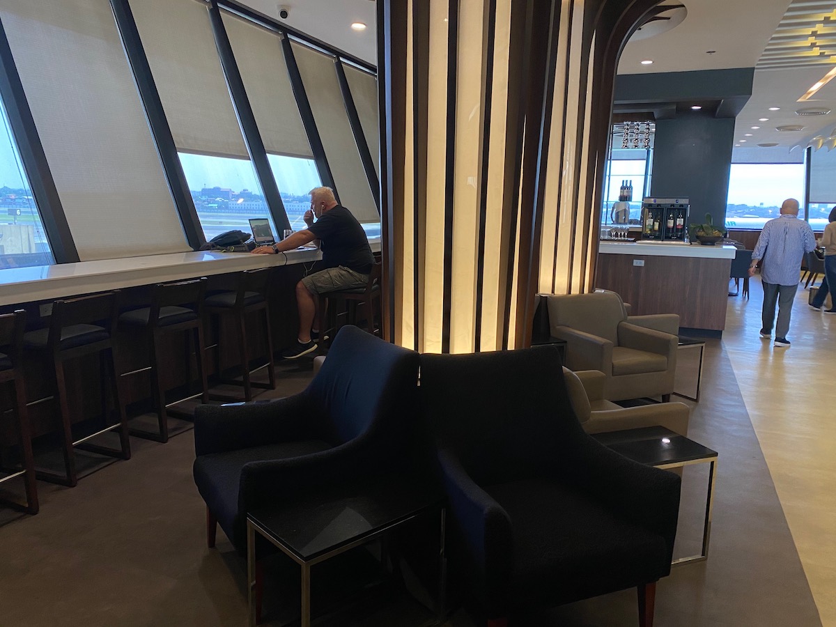 The lounge has one main room along the windows, which has a bunch of seating that looks like, well, just about any somewhat outdated airline lounge.