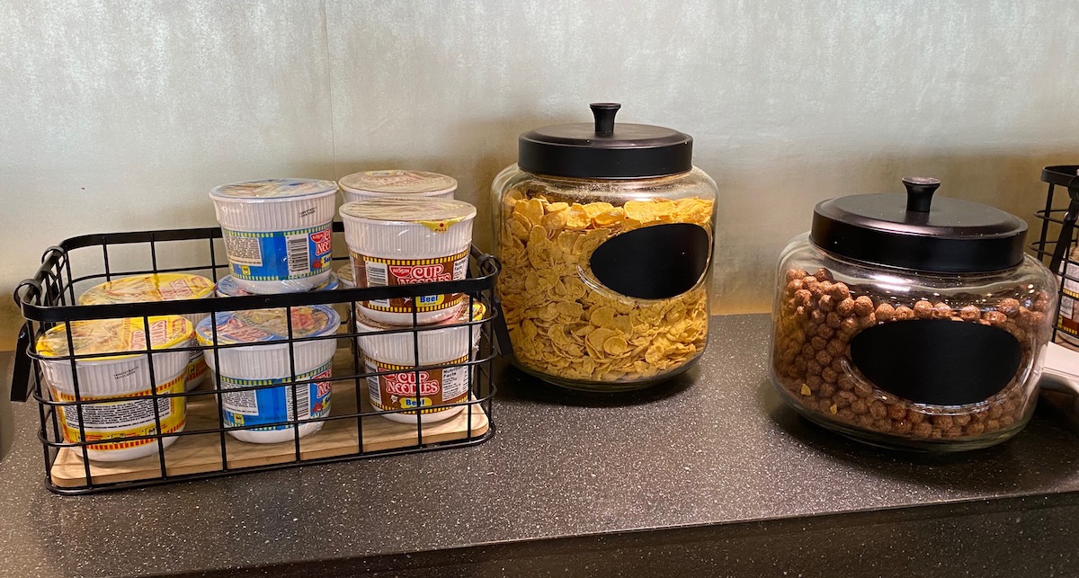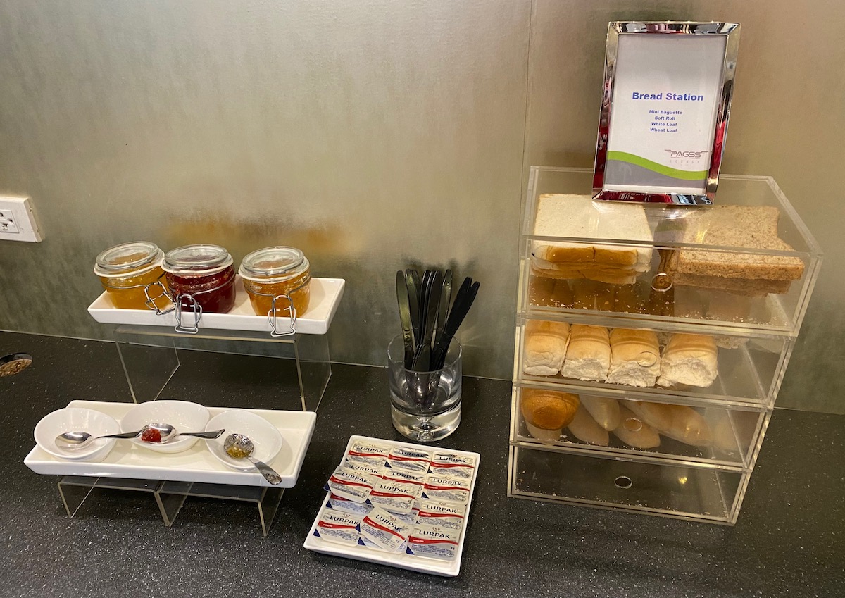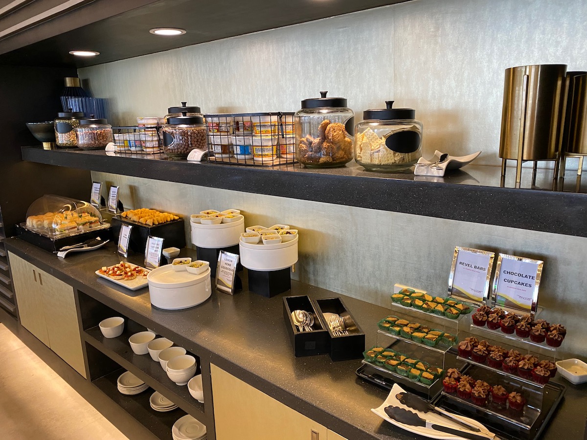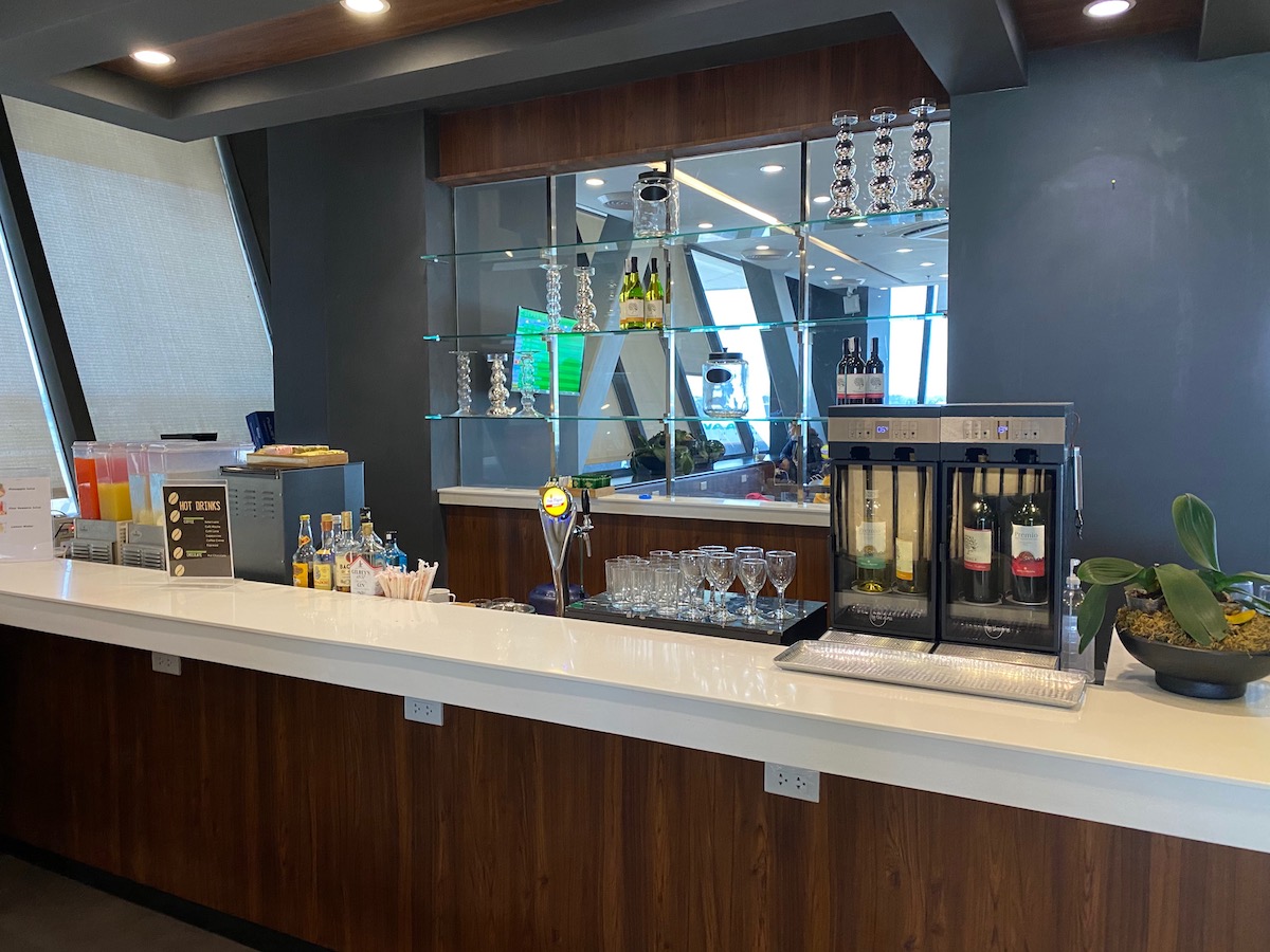 The lounge had a relatively large food and drink selection. In the smaller room of the lounge was a bar, where there was a server who could serve liquor and coffee (best I could tell the coffee options weren’t actually barista made, but he just sorta pushed the buttons for you).