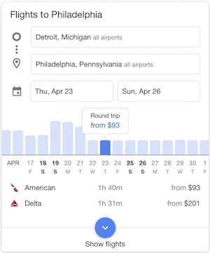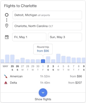 Obviously these are some specific examples, but it reinforces what I’ve seen in general when pricing flights — American is pricing significantly lower than Delta across the board right now.