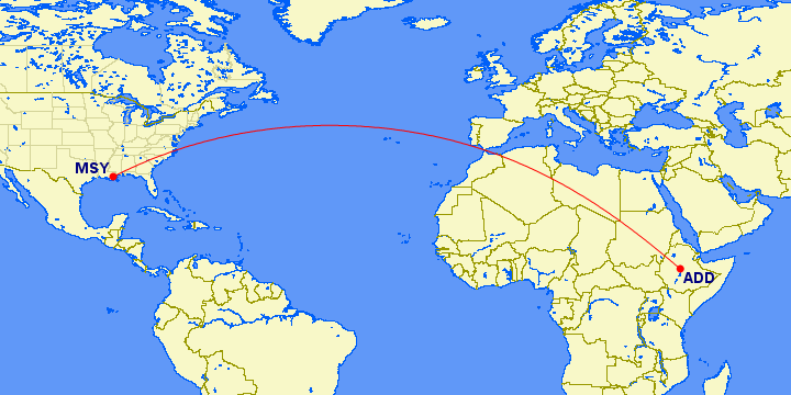 - ET-ANO flew from Addis Ababa to Stockholm to Oslo to Washington to New Orleans; the flight from Addis Ababa to Stockholm to Oslo was a regularly scheduled one, then the plane flew through Washington for a crew change