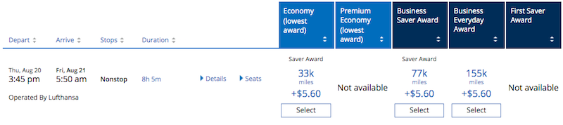 The below Detroit to Frankfurt business class ticket on Lufthansa used to cost 70,000 miles one-way, but the price has gone up by 10%, to 77,000 miles.